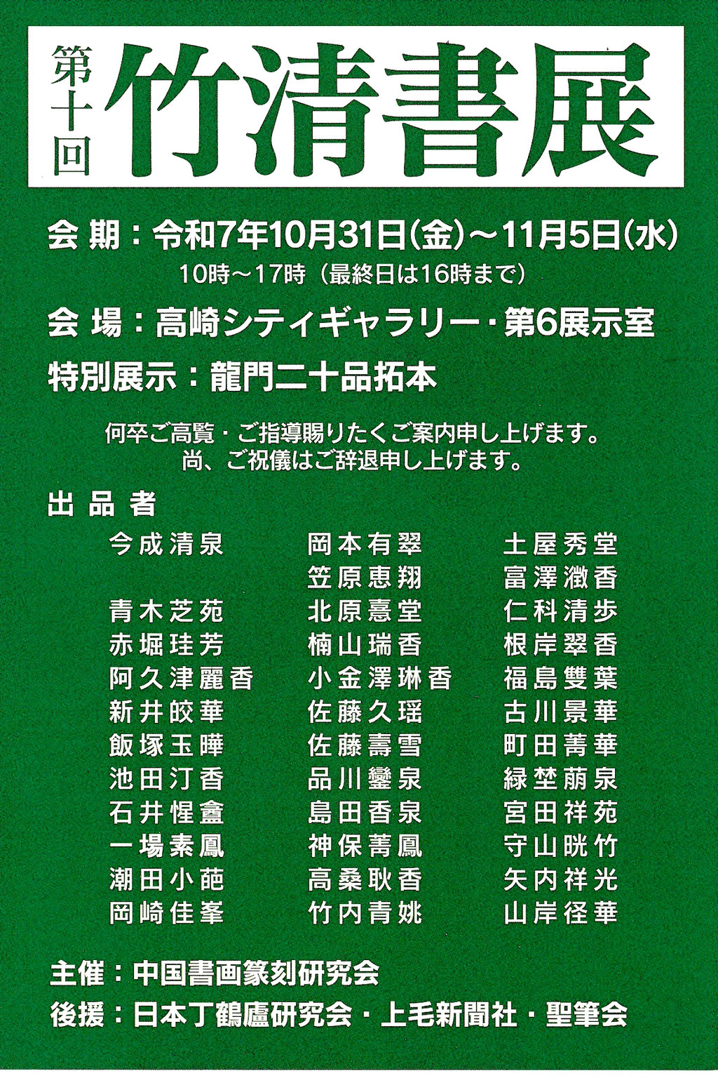 本会参与 今成 清泉先生の社中展です。皆様のご来場を心よりお待ちしております。詳細は、添付の画像をご参照ください。