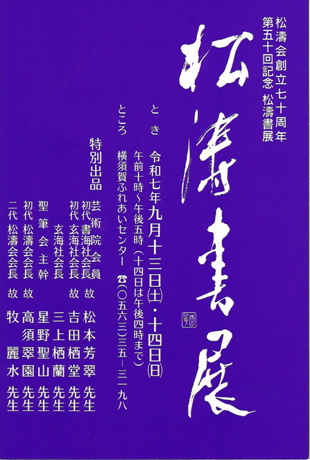 本会常任理事 加藤松雲先生の社中展です。皆様のご来場を心よりお待ちしております。詳細は、添付の画像をご参照ください。