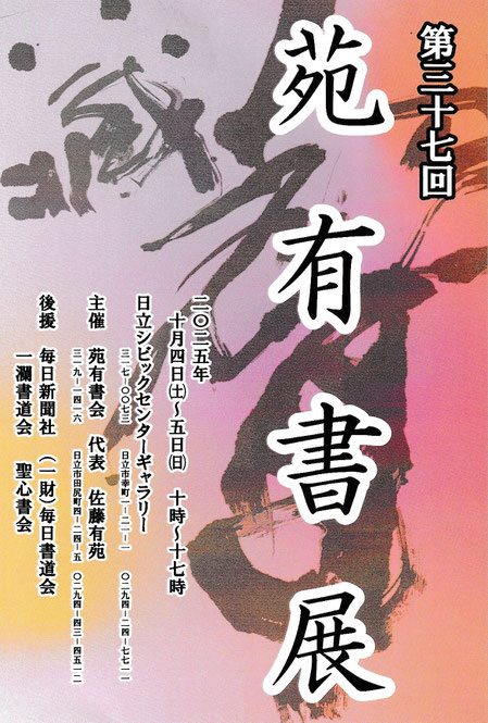 本会参事 佐藤有苑先生の社中展です。皆様のご来場を心よりお待ちしております。詳細は、添付の画像をご参照ください。